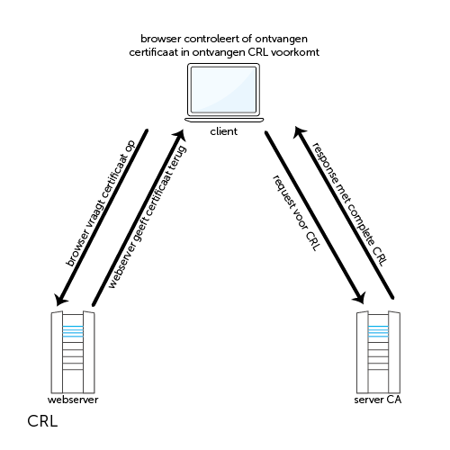 Daarnaast is het geen foutloos proces: mocht de CA niet bereikbaar zijn, wordt er geen CRL teruggegeven aan de browser en gaat de browser er, mogelijk incorrect, van uit dat het certificaat betrouwbaar is. Ook is het aan de CA om de CRL up to date te houden. Mocht de CA een CRL niet tijdig bijwerken, zou een gerevoked certificaat nog steeds als veilig gezien kunnen worden door de browser.
